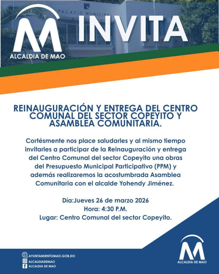 La Alcaldía del municipio de Mao invita a todas las organizaciones comunitarias a la: