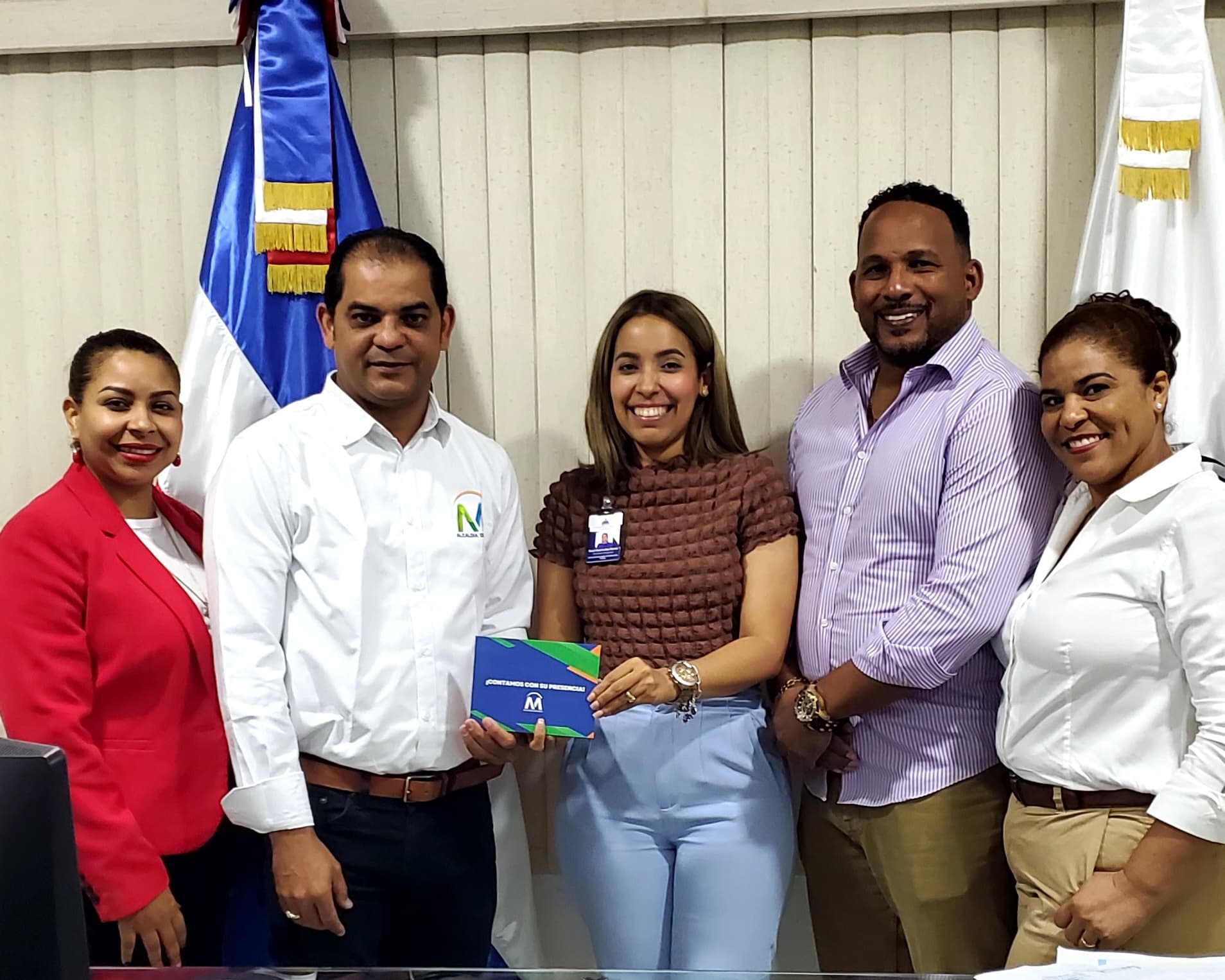 Durante el encuentro, el alcalde estuvo acompañado por los regidores Yina Rodríguez y Julio García, así como por la técnica distrital Evelina Luciano, quienes participaron en una reunión con enfoque institucional.