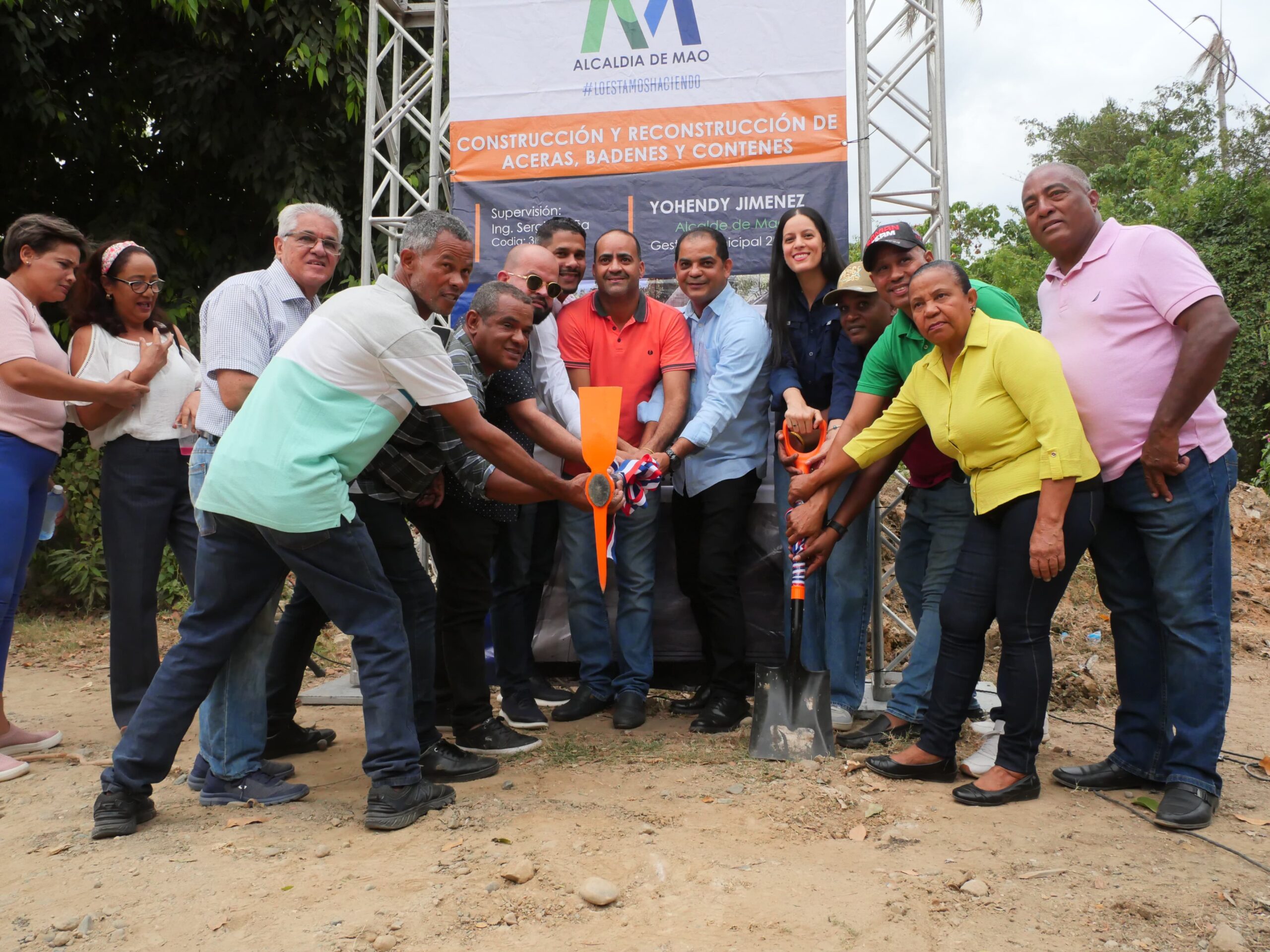 La Alcaldía de Mao dejó iniciados los trabajos de construcción y reconstrucción de aceras, contenes y badenes en el sector Villa Brisa Primaveral, en un acto encabezado por el alcalde Yohendy Jiménez Bonilla y autoridades municipales.
