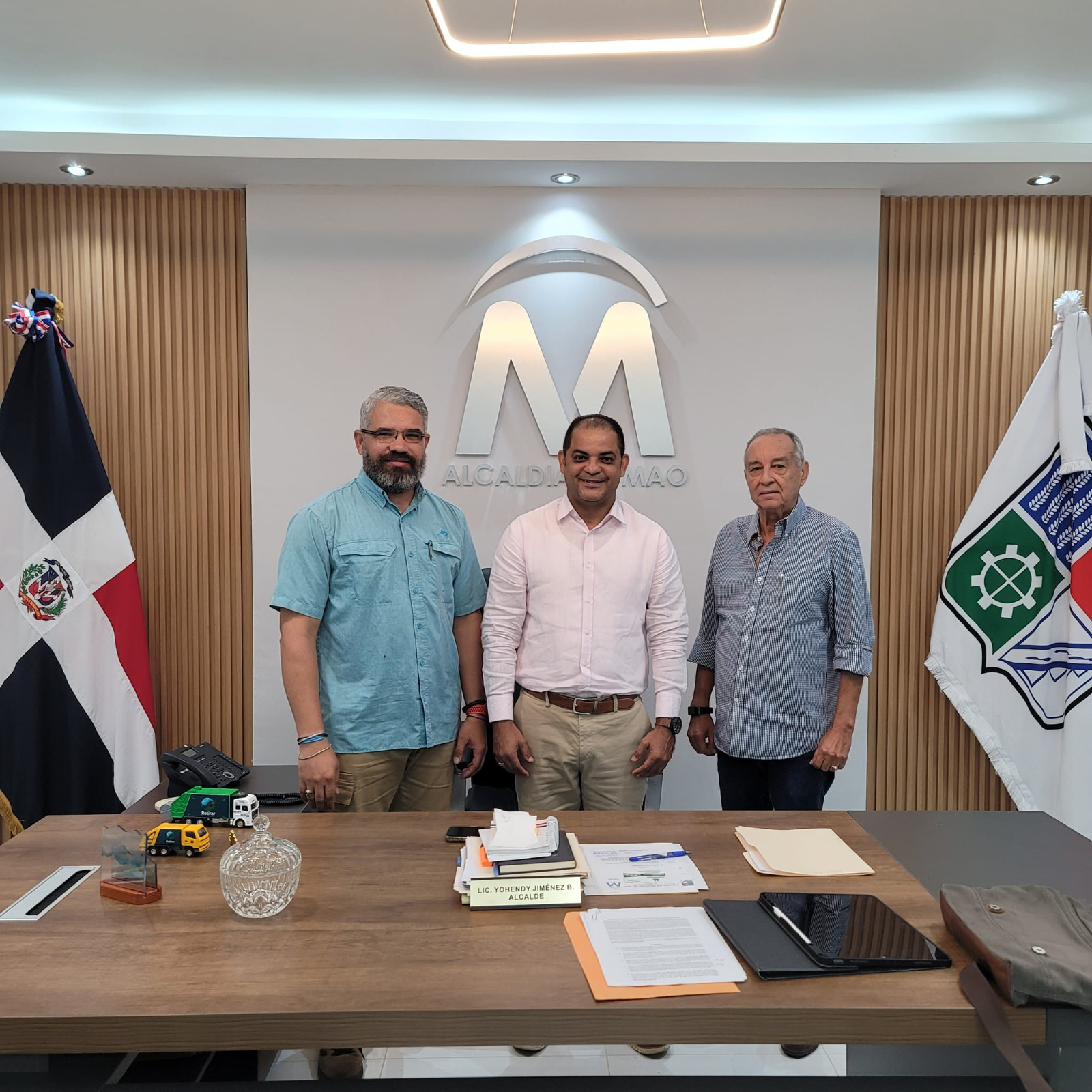 El alcalde Yohendy Jiménez Bonilla recibió la visita del ingeniero Anyelo Ortiz, encargado del Sitio de Disposición Final y Relleno Sanitario de la empresa Eco5RD, acompañado del ingeniero Miguelín Marrero, para dar seguimiento al proyecto de construcción de una estación de transferencia de residuos sólidos en el vertedero municipal.