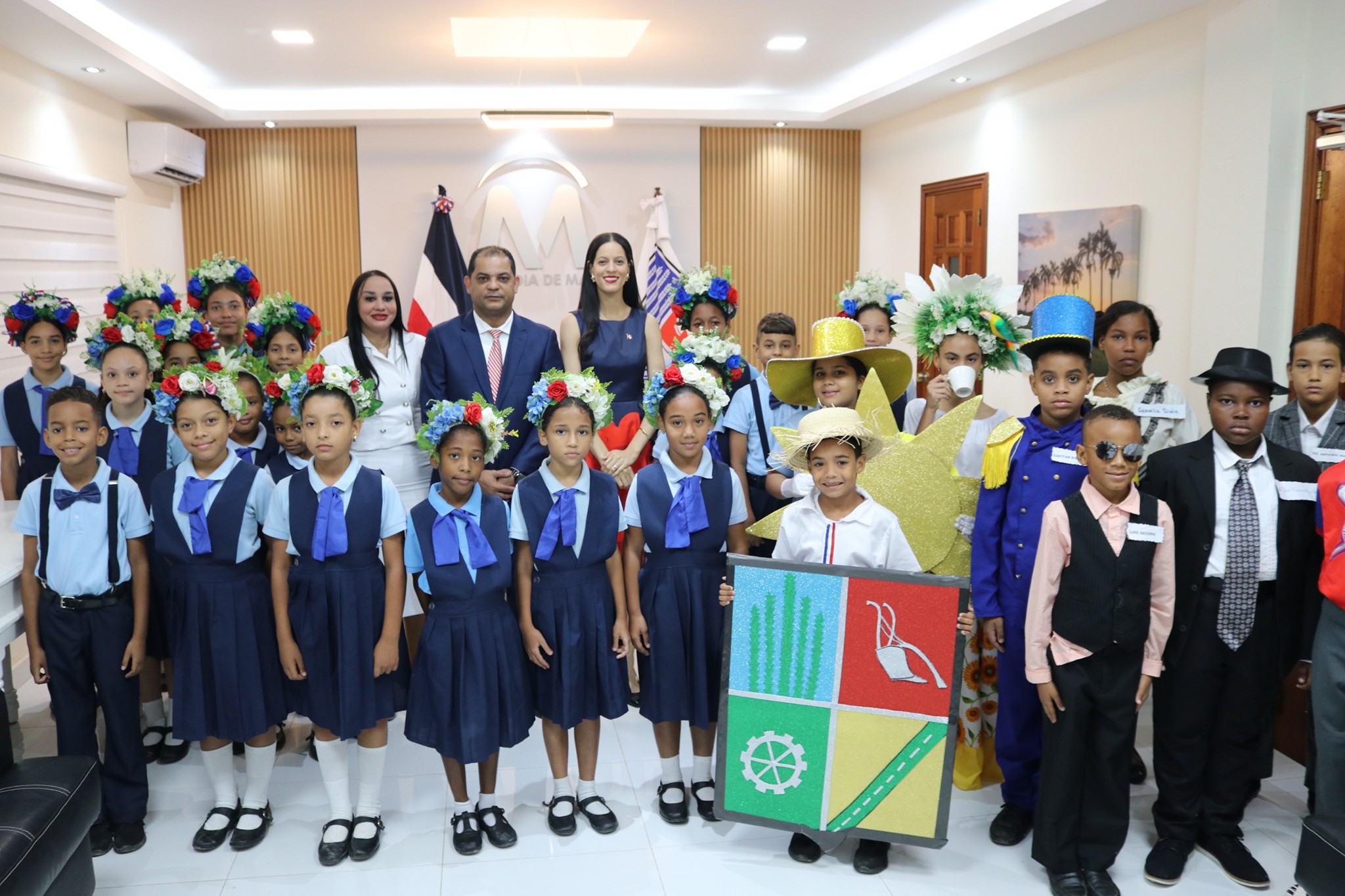 Antes del acto conmemorativo del 143 aniversario de vida municipal, el alcalde Yohendy Jiménez y la vicealcaldesa Estefany Frías recibieron en el despacho a la coral infantil de la Escuela Juan Isidro Pérez, dirigida por la profesora Mariela Rodríguez, destacando el valor de nuestros niños como orgullo cultural del municipio. Ellos interpretaron con emoción el Himno Municipal.