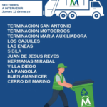 12 marzo, 2026Les comunicamos el calendario de recogida de desechos sólidos para este jueves 12 de marzo.