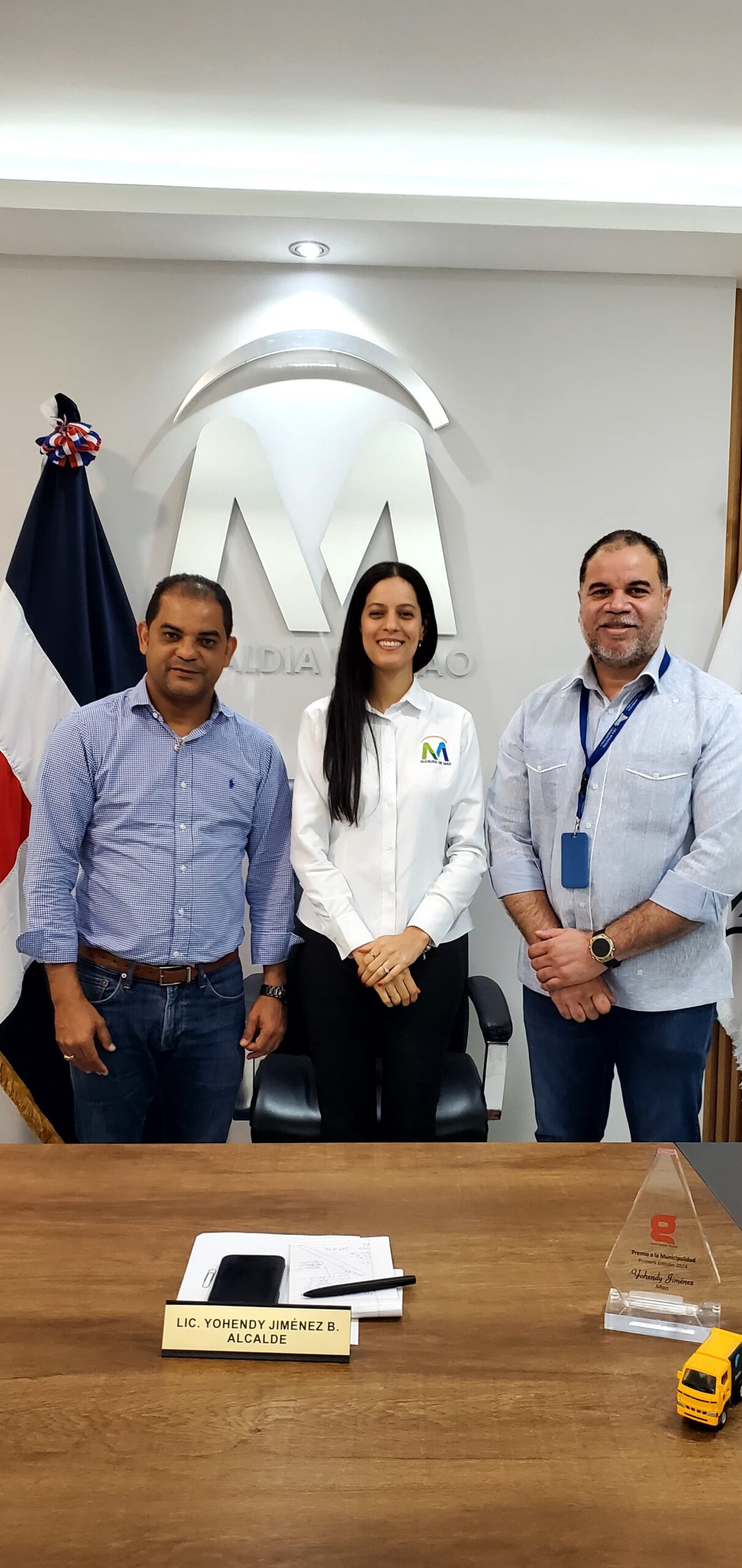Mao, Valverde. – El alcalde del municipio de Mao, Yohendy Jiménez Bonilla, recibió en su despacho al arquitecto George Richardson, director de Planeamiento Urbano de la Liga Municipal Dominicana, y a la ingeniera Roxanna Brito, de la Unidad de Acompañamiento en Planificación Territorial de FEDODIM.