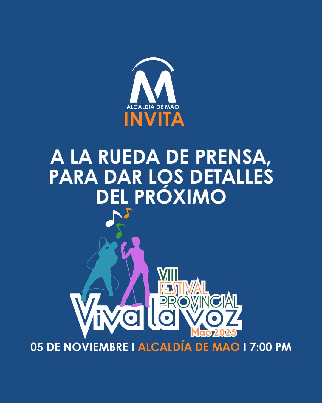 La Alcaldía de Mao invita cordialmente a todos los medios de comunicación a la rueda de prensa donde se ofrecerán los detalles del VIII Festival Provincial Viva la Voz Mao 2025.